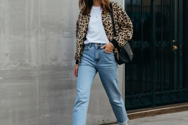 For everyday looks, pair an animal print piece with casual wardrobe staples. A leopard‑print jacket over a white tee and straight denim creates an easy but memorable outfit. Add sneakers and minimal jewelry to complete the look.